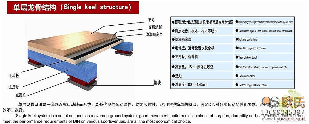 生 產(chǎn) 商 歐氏單層龍骨體育木地板